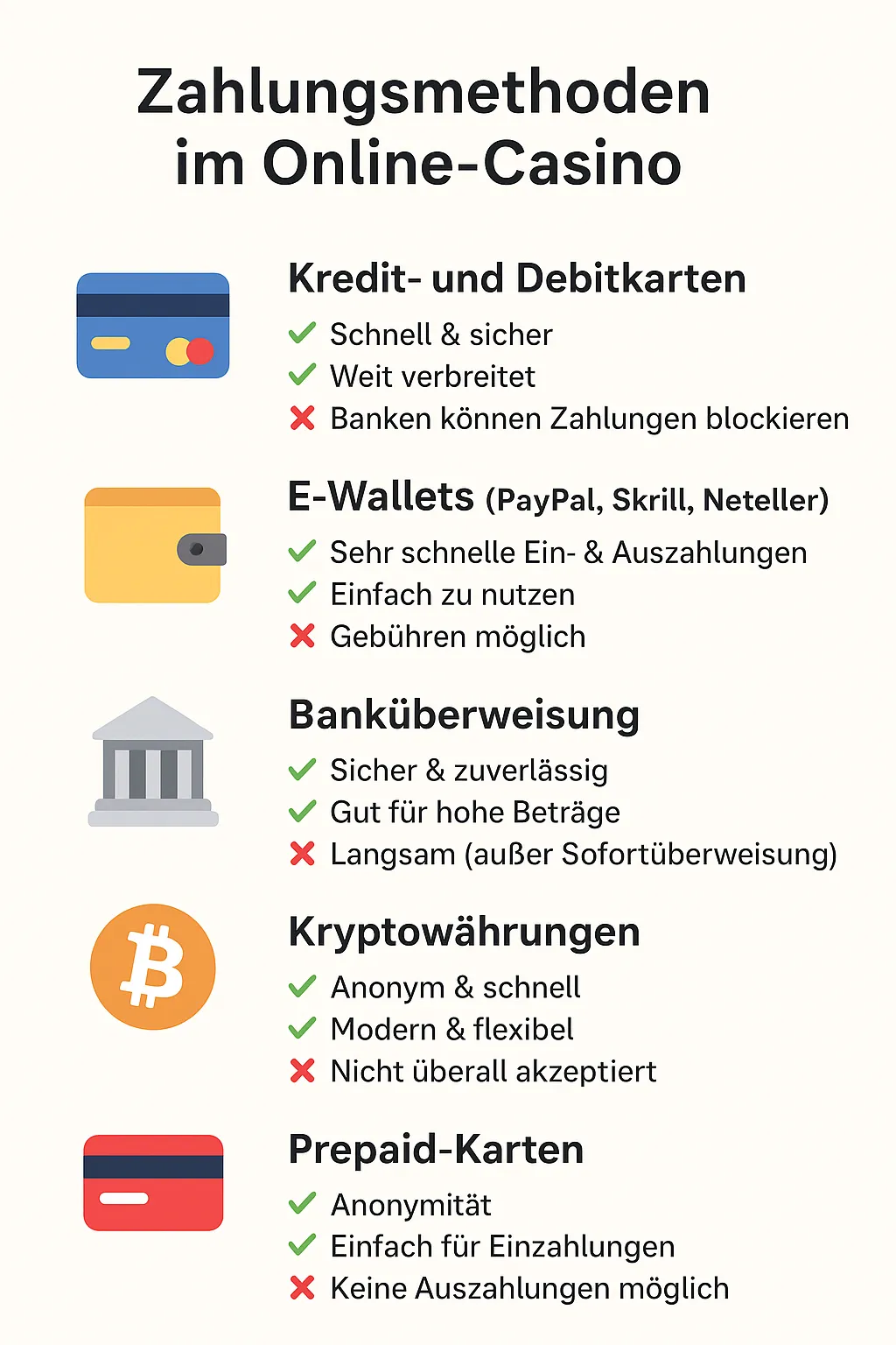 Sichere Casinos bieten viele Zahlungsoptionen wie Kreditkarten, E-Wallets und Banküberweisungen. Ein- und Auszahlungen sollten schnell und gebührenfrei ablaufen.