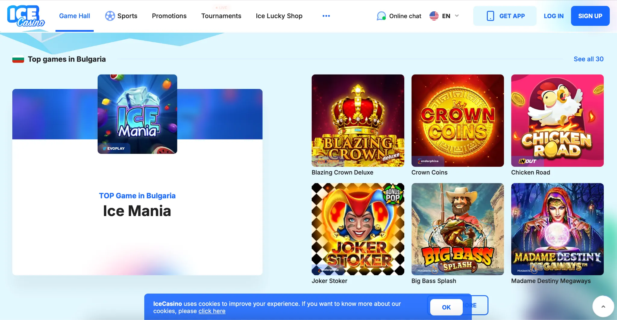 Навигацията е плавна и лесна дори за нови потребители, можете да филтрирате игрите по тип (слотове, рулетка, live казино), по доставчик или по популярност. В днешния ICE преглед ще ви разкрием още много важни детайли.