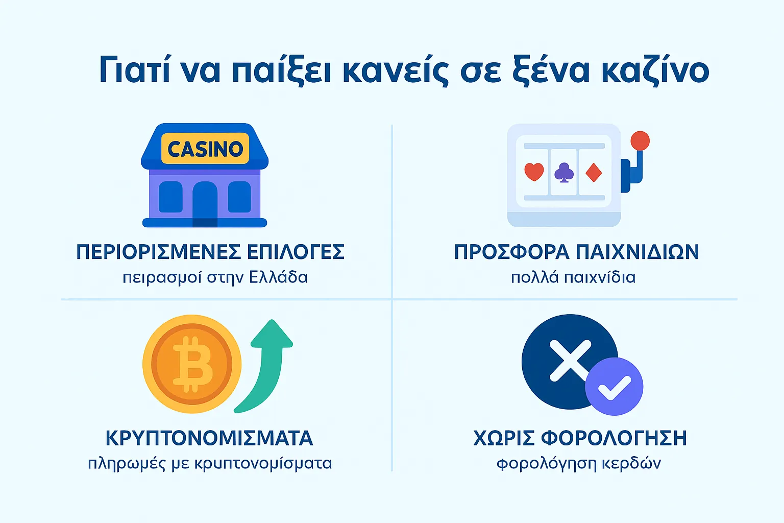 - Τα ξένα καζίνο δεν επιβάλλουν φορολόγηση κερδών.